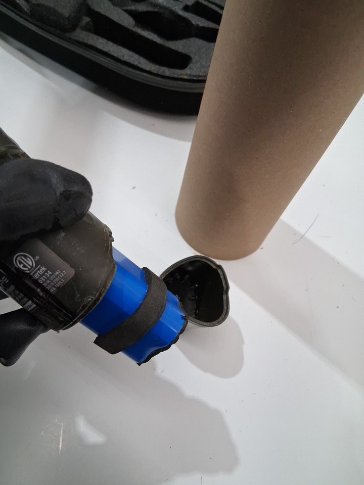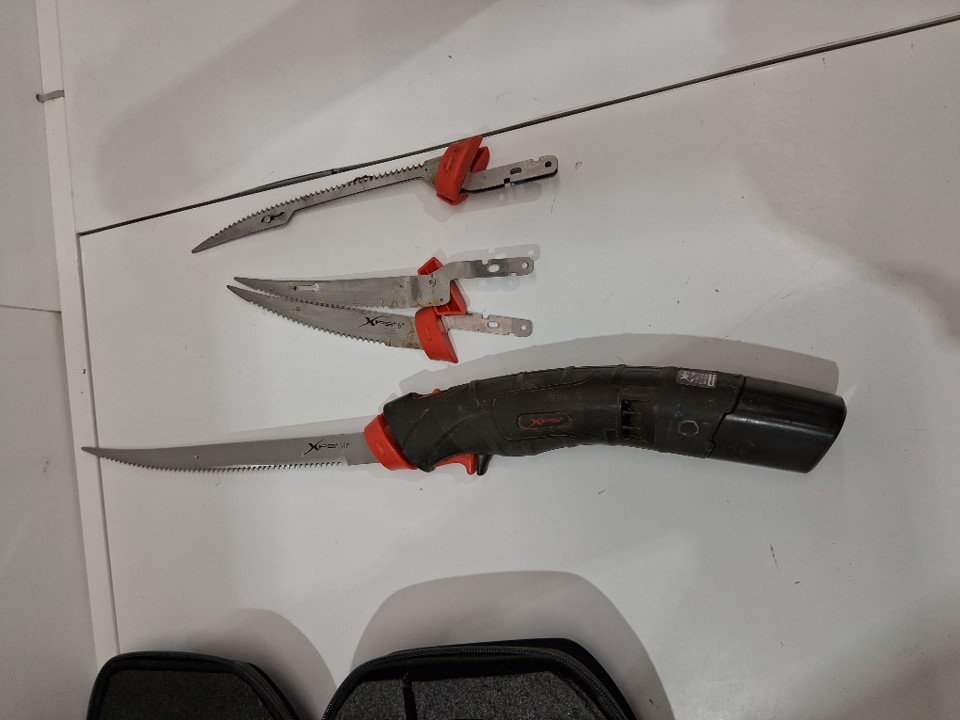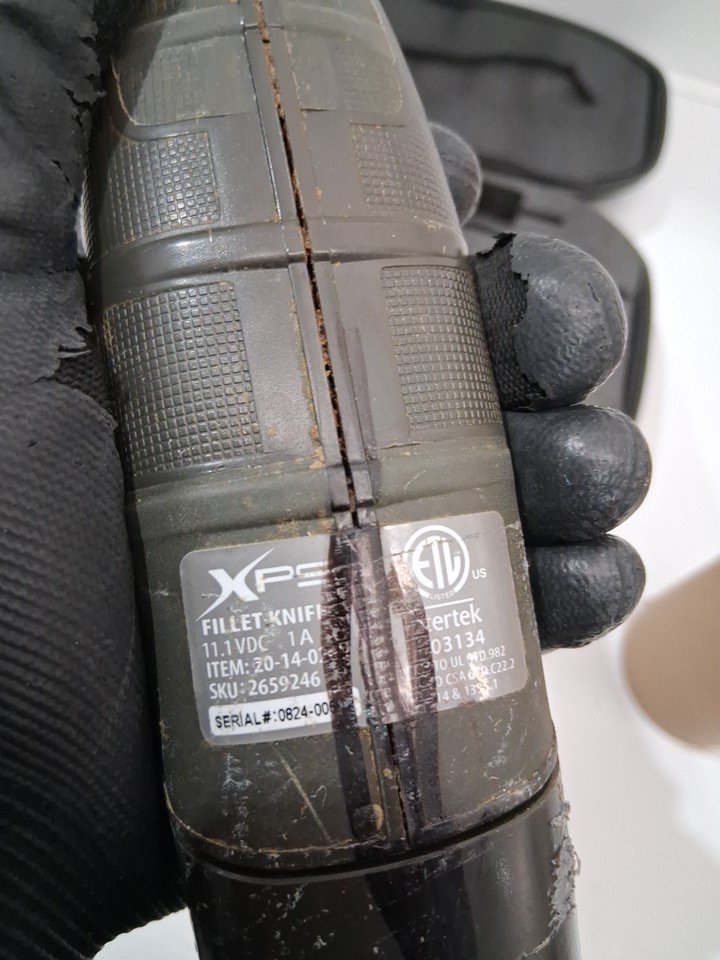Tested for power Main handle, two blades and carry case are are dirty and have food stains on them We are missing our charging cable, and the battery cover appears to pop off easier than it is likely supposed to