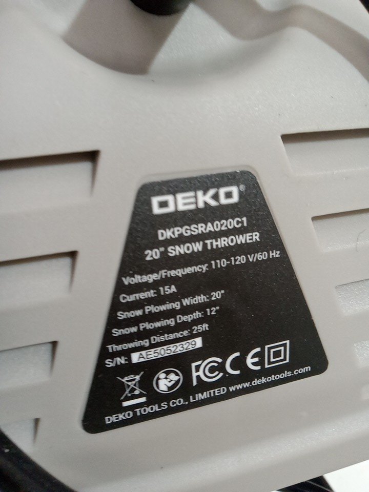 DEKOPRO Electric corded Snow Shovel Snow Blower/thrower - 20" Clearing Width - Black/Green (Model: DKPGSRA020C1)