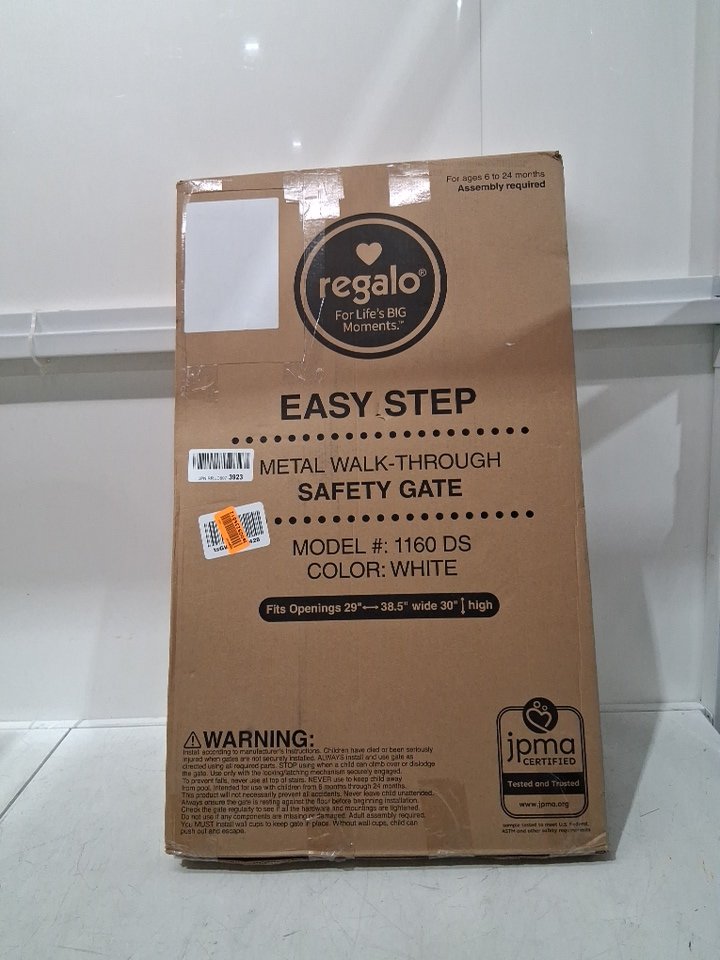 REGALO EASY STEP EXTRA WIDE METAL BABY SAFETY GATE - FITS OPENINGS 29"-38.5" WIDE x 30" HIGH - WHITE (MODEL: 1160DS)