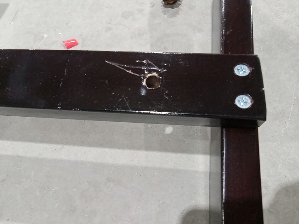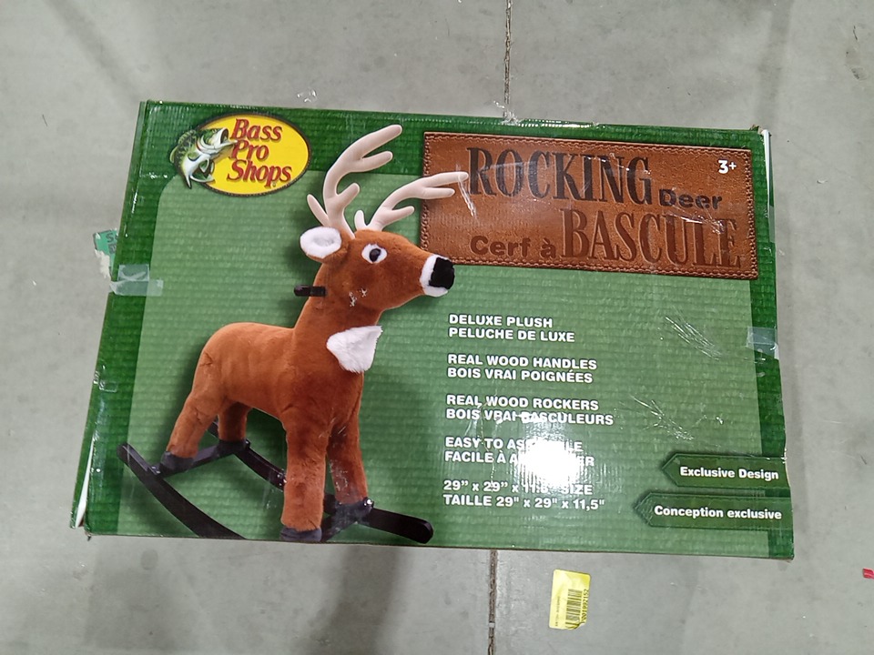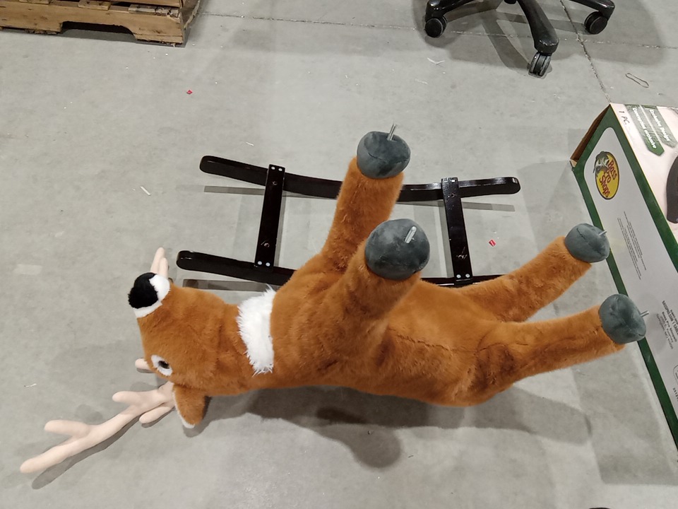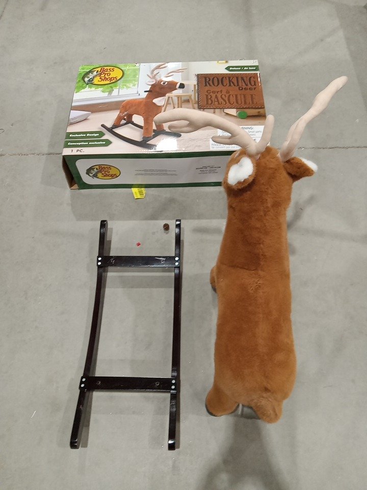 Upon inspection we have found the side handles are missing and their some scuff marks around the assembly points of the rocker indicating it has been previously used and a pinecone has fell off which can be hot glued back on, see photos below.