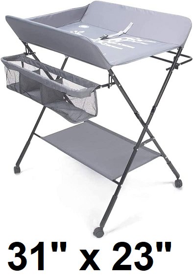 SUNHOO Diaper Changing Table, Portable Baby Diaper Table with Wheels and Storage - 31" x 23" - grey
