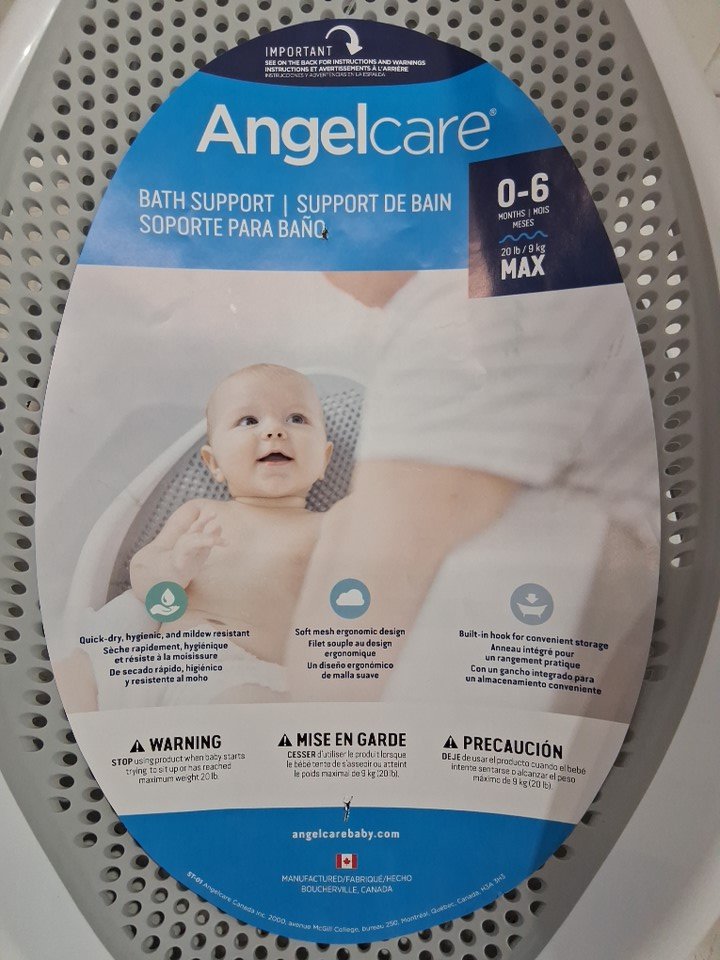 ANGELCARE BABY BATH SUPPORT - 0 to 6M/20LBS MAX - grey/white (MODEL: ‎ST-01-PK-CA / i000545)