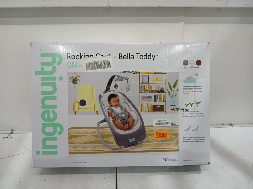 INGENUITY BOUTIQUE COLLECTION ROCKING SEAT Bella Teddy FOR BABY - 0 Months to 2.5 Years - WHITE/GREY (MODEL: 10986-EES)