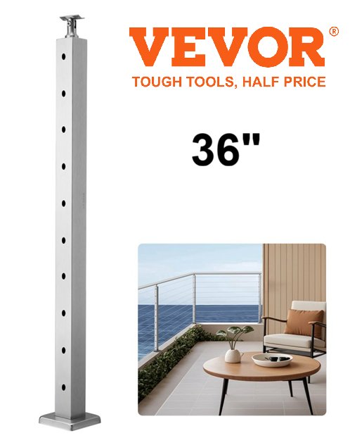 cable railing post - 36" - Stainless Steel -(Model-hr-012g)