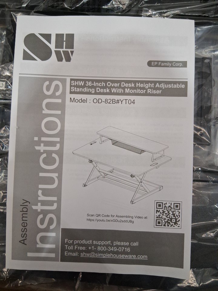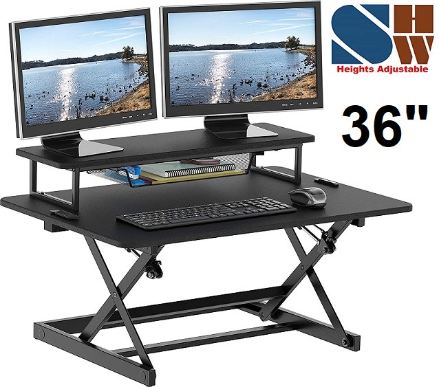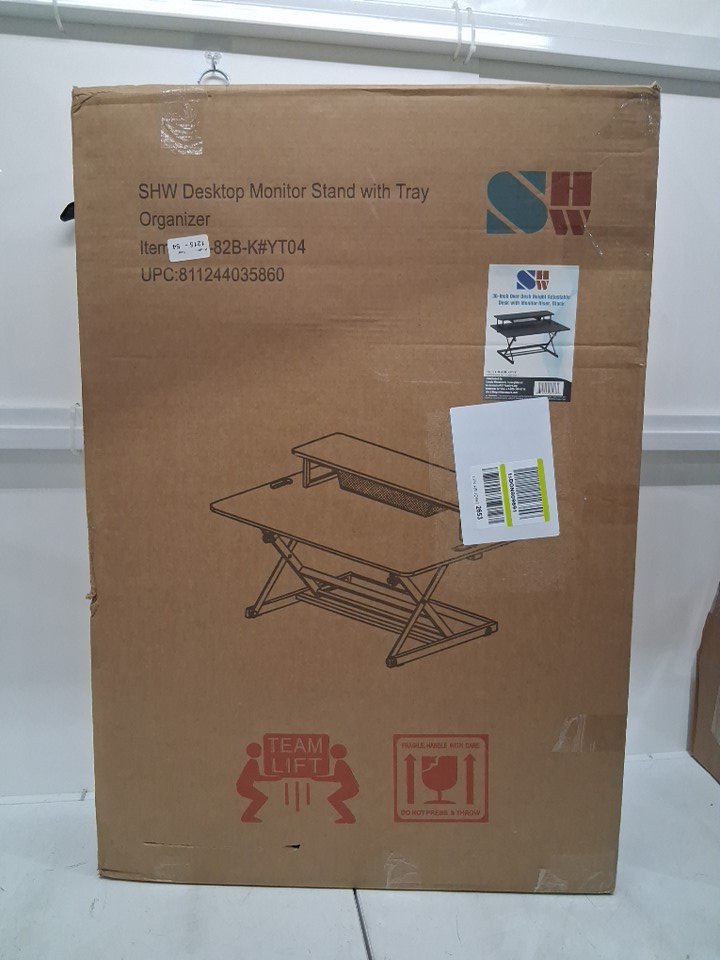 SHW 36" OVER DESK HEIGHT ADJUSTABLE STANDING DESK WITH MONITOR RISER - BLACK (MODEL: OD-82B-G#YT04)