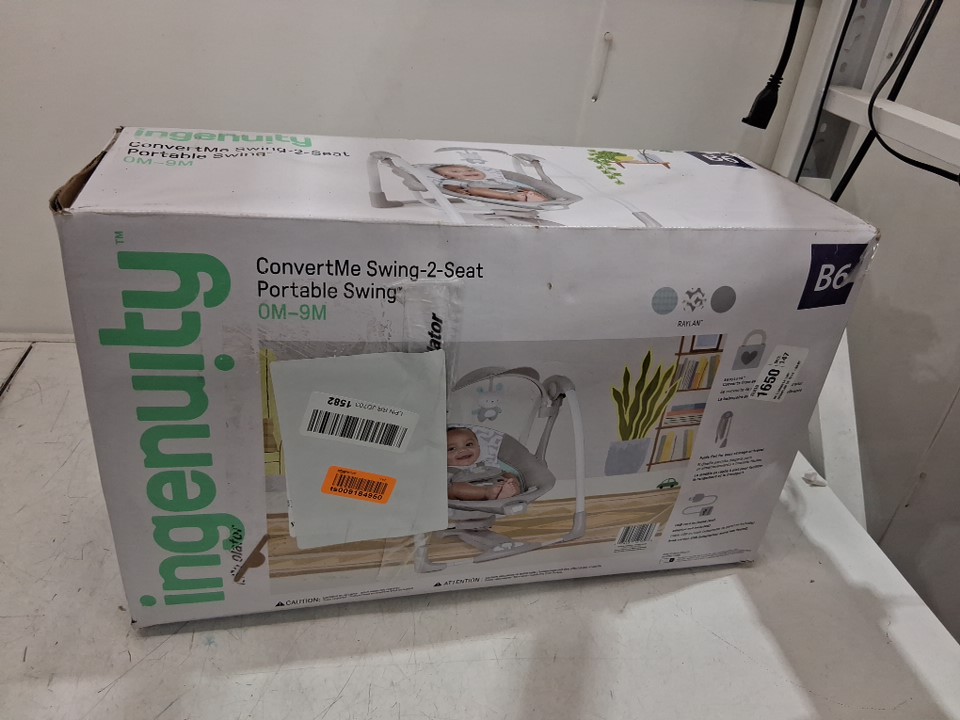 INGENUITY CONVERTME SWING-2-SEAT corded PORTABLE SWING - OM to 9M - RAYLAN FASHION / grey (MODEL: 12189-es)