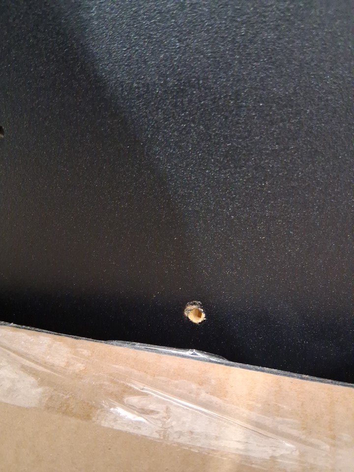 Has an imperfection/hole on the surface and minor scratches.