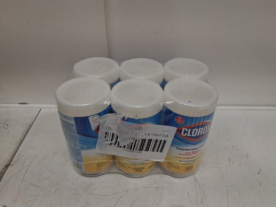 6PK CLOROXPRO CLOROX DISINFECTING WIPES - 75 WIPES EACH - CRISP LEMON SCENT
