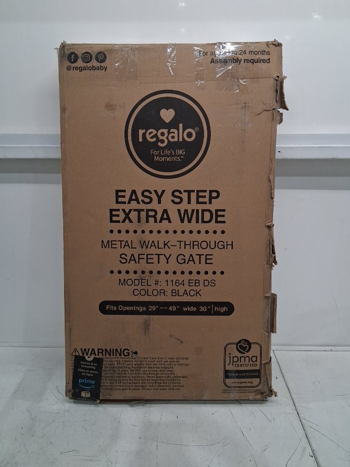 REGALO EASY STEP EXTRA WIDE METAL SAFETY GATE - 30" x 29" - 49" - BLACK (MODEL: 1164EBDS)