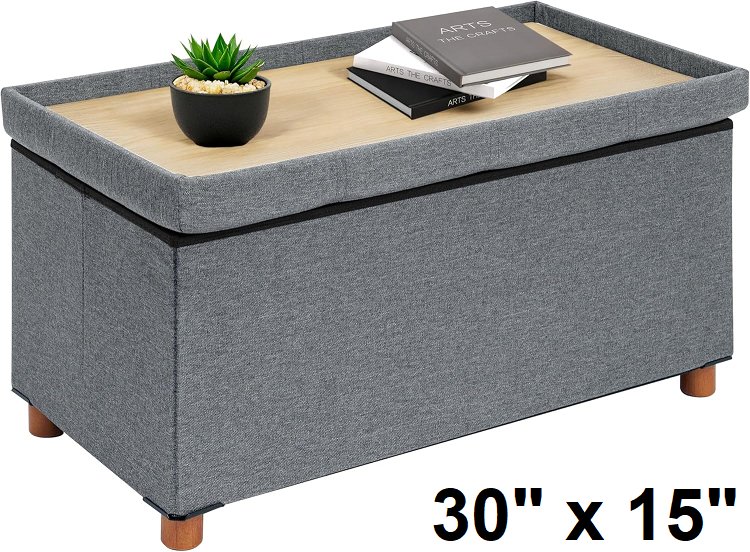B FSOBEIIALEO Folding Storage Ottoman with tray - 30" x 15" - dark grey