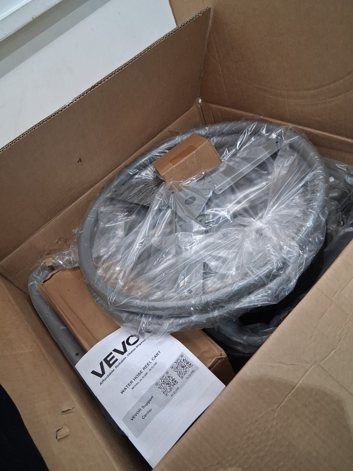 Garden Water Hose Reel Cart with 4 Wheels AND Storage Basket - 250FT - BLACK / SILVER (MODEL: alq-250)