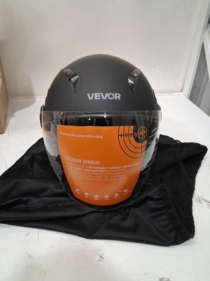adult unisex 3/4-Face Motorcycle Helmet with clear visor and Detachable Liner - large - black - (model: md-207)