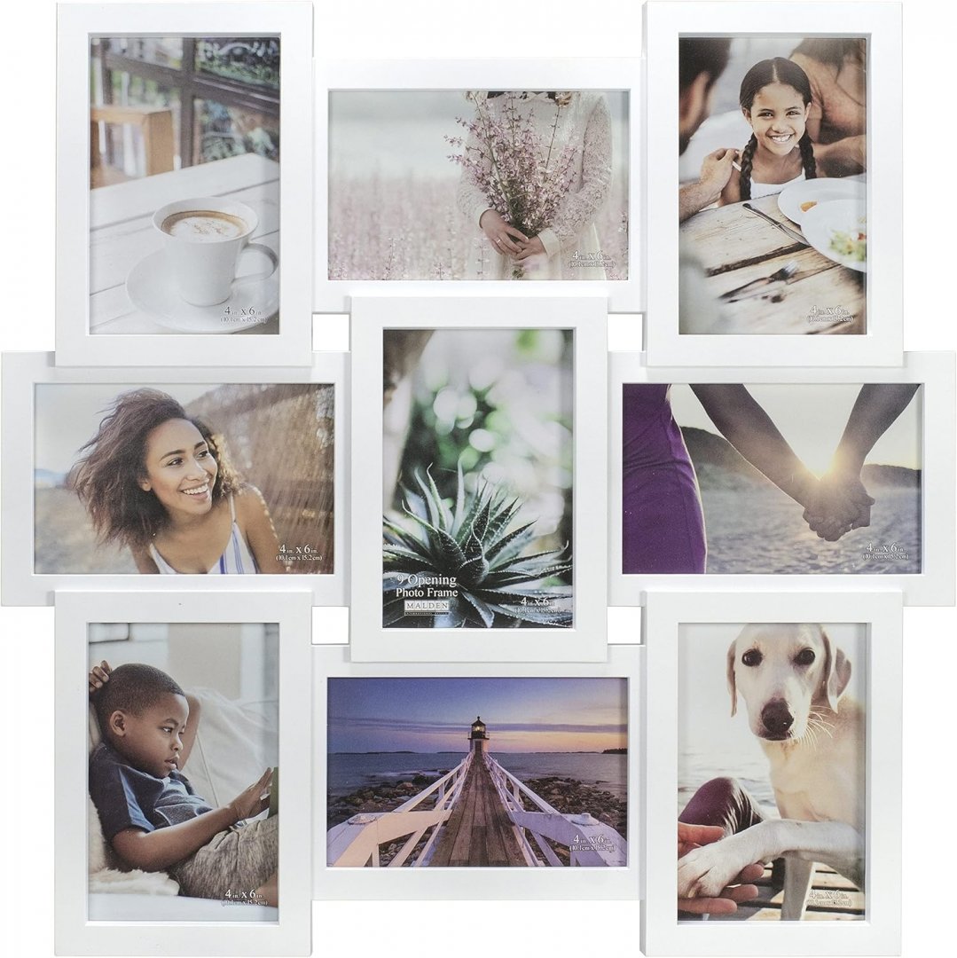Malden International Designs 9-Opening Dimensional Collage Photo Wall Frame - 17.3" x 17.3" - White