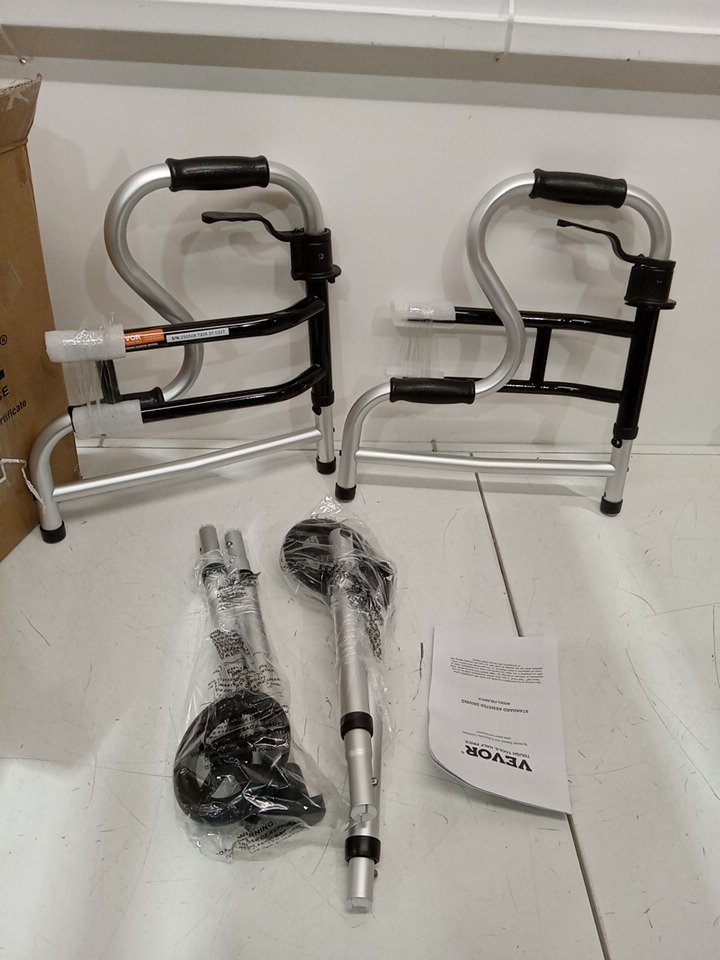 FOLDING walker stand with Adjustable Height & Width holds 450lb - silver/black - (model:fbl860516)