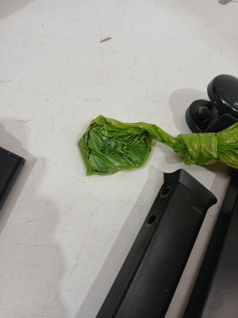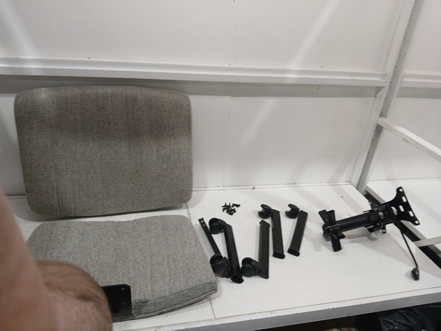 There are some stains and no manual. The hardware was loose in the box and could be missing.