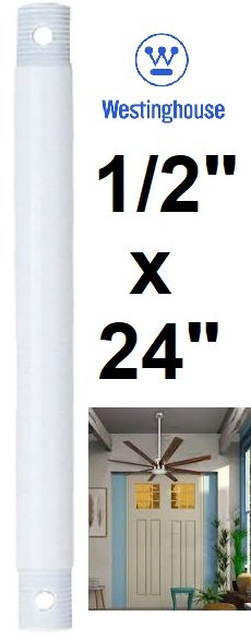 westinghouse lighting extension down fan rod - 1/2" x 24" - white finish (model: 7724300)