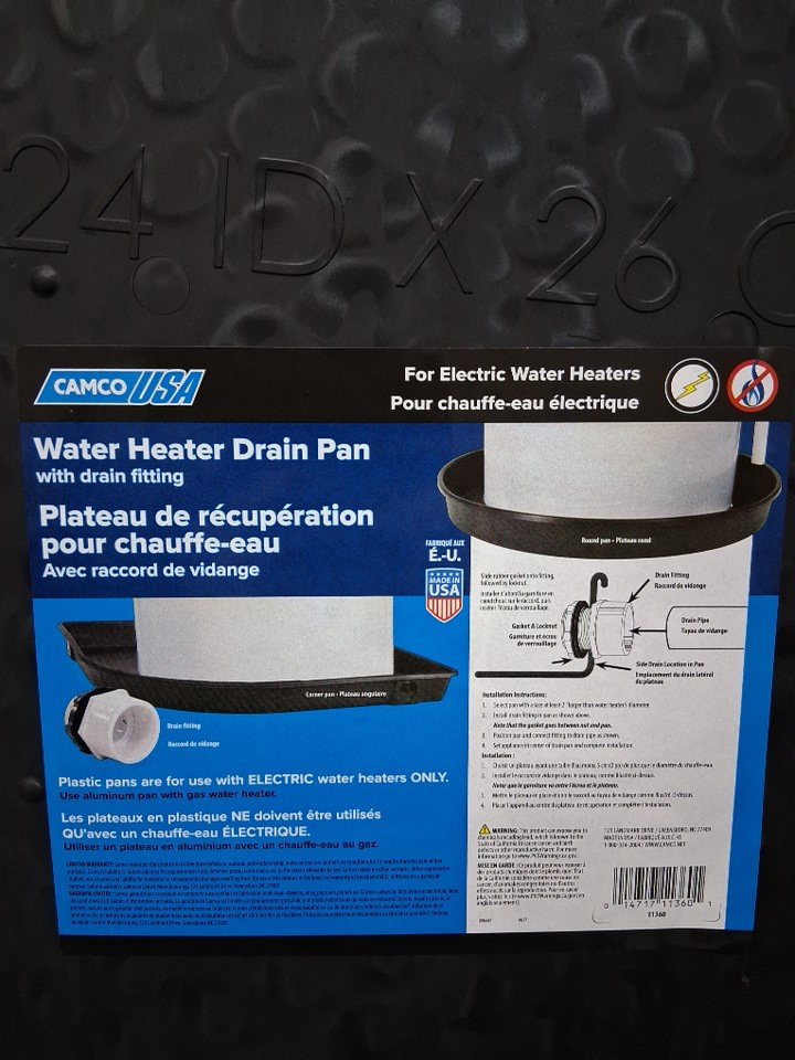6pk CAMCO water heater Plastic Drain Pan - 24" - Black (model: 11360)