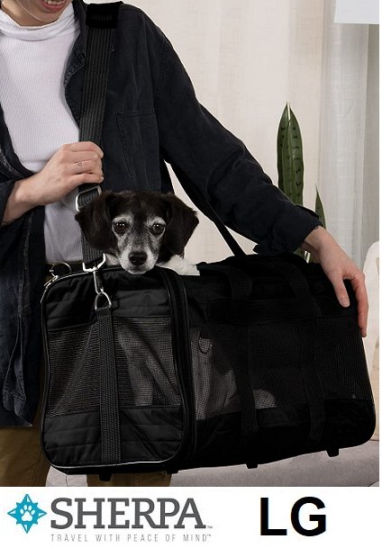 SHERPA ORIGINAL DELUXE PET DOG/CAT CARRIER WITH LINER & SHOULDER STRAP - LARGE - FOR PETS UP TO 22LBS - BLACK (MODEL: 55511)