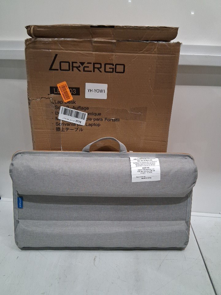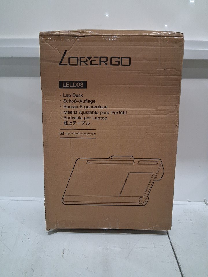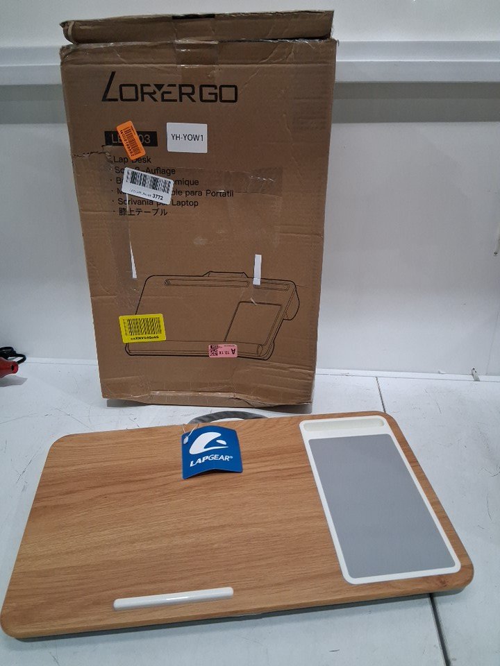 LORYERGO LAPTOP LAP DESK - PORTABLE LAPTOP DESK TRAY WITH WRIST REST & BUILT-IN MOUSE PAD - WOOD GRAIN (MODEL: LELD03)