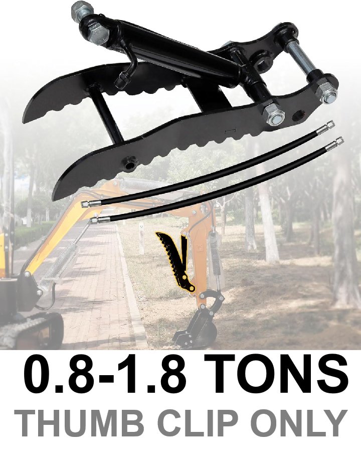 Hydraulic Thumb Clip For Mini Excavators Attachment FOR Single Hole Metal Grab - 0.8 - 1.8 Tons - BLACK