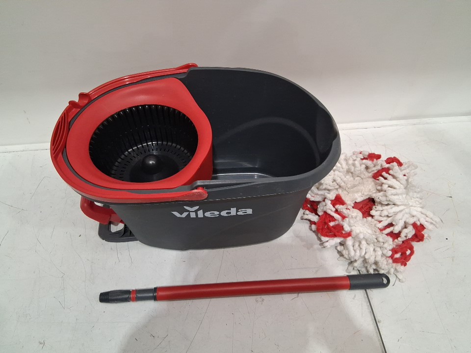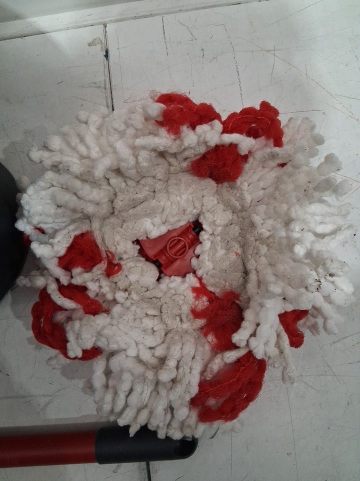 Signs of light use, mod head has some dirt on it, light scratching on mop bucket