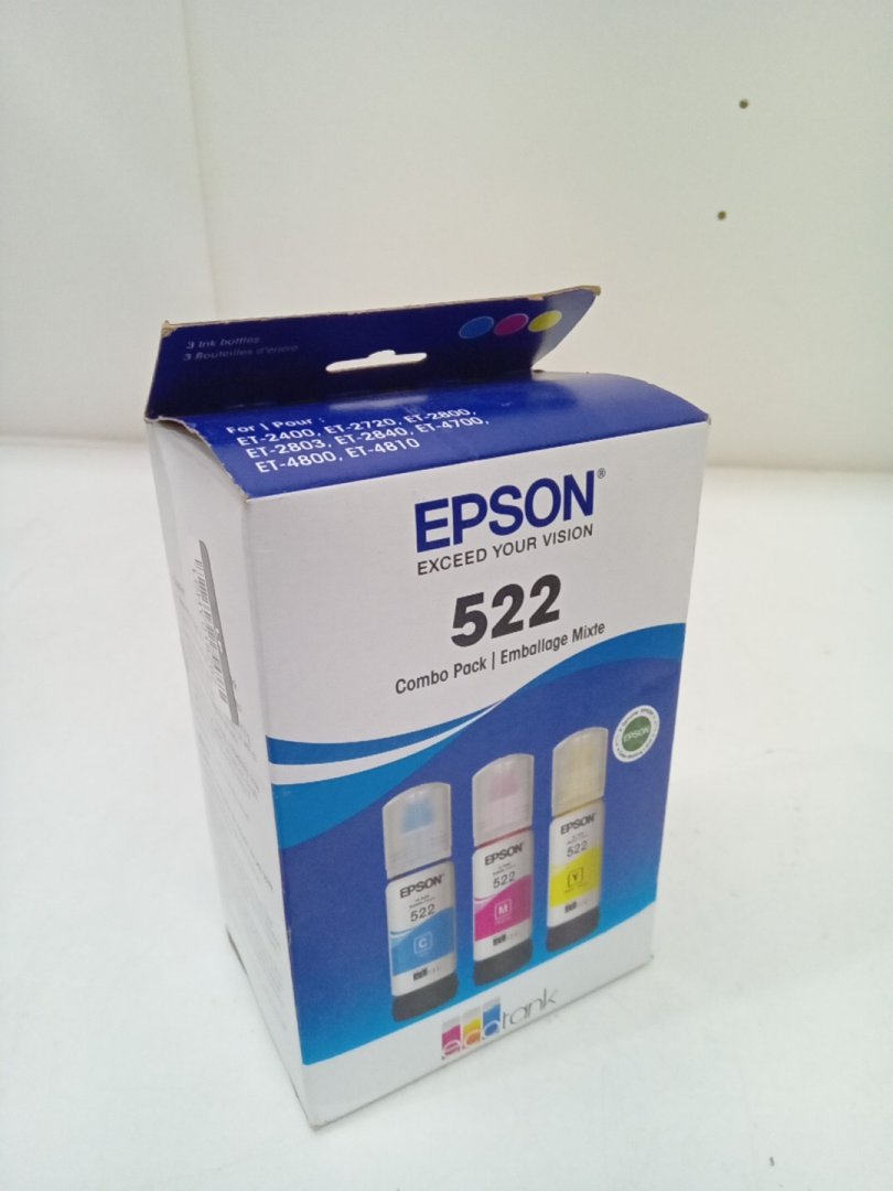 3PC Epson 522 Combo Pack Ink Refill Bottles for Select EcoTank Printers - 65mL Each - Cyan, Magenta, Yellow (Model: T522520-S/CP)