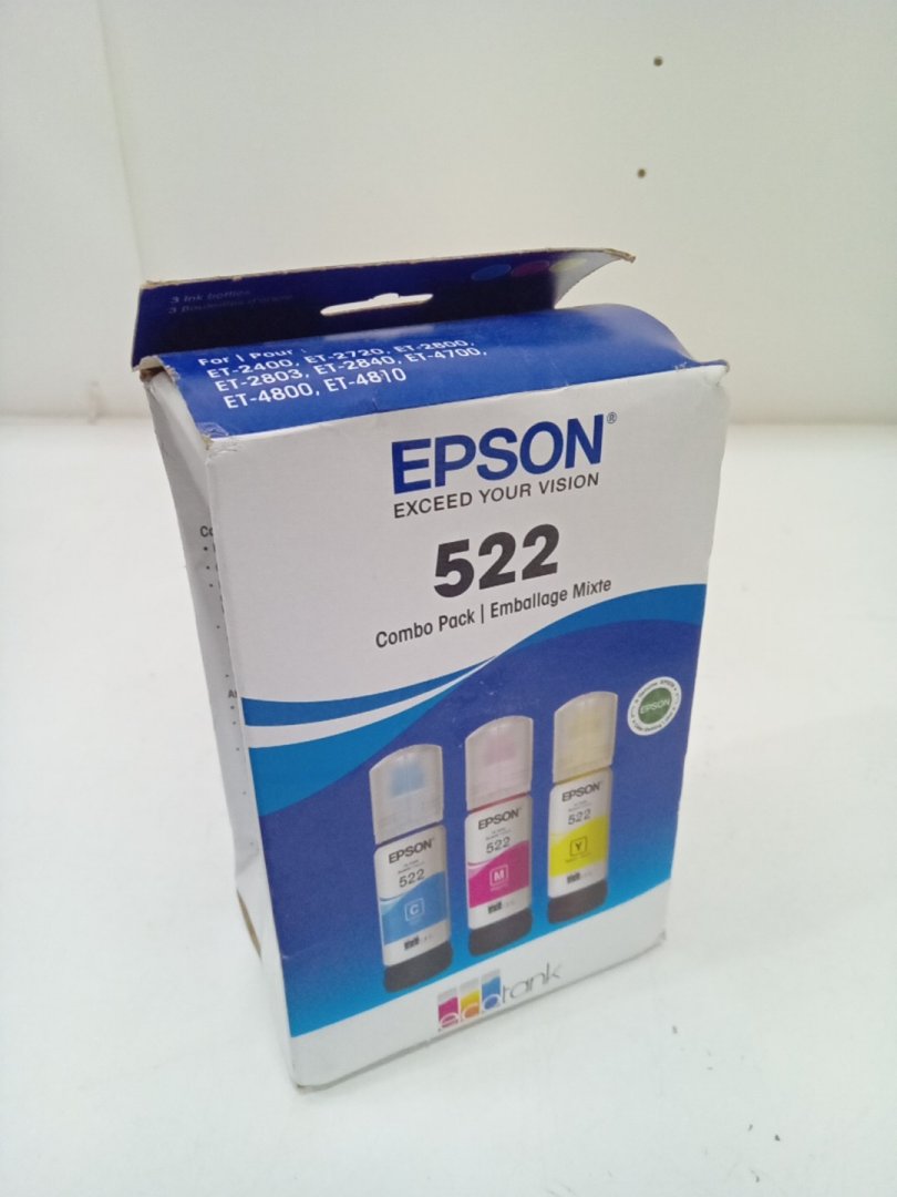 3PC Epson 522 Combo Pack Ink Refill Bottles for Select EcoTank Printers - 65mL Each - Cyan, Magenta, Yellow (Model: T522520-S/CP)