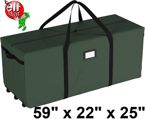 elf stor rolling duffle christmas tree storage bag - fits up to 9ft tree - 59" x 22" x 25" - green