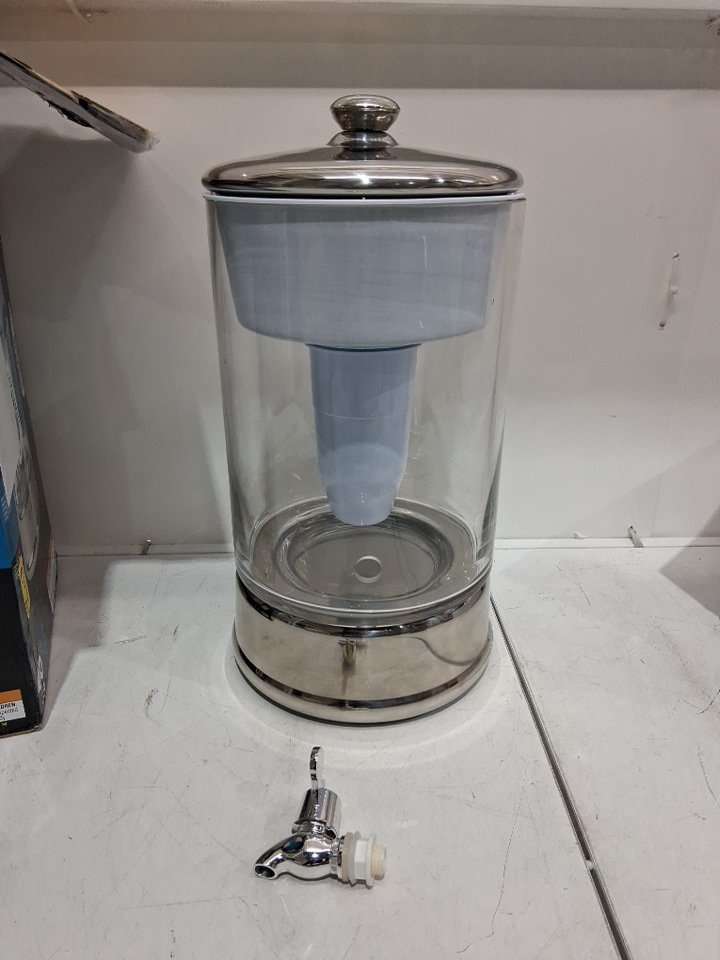 Culligan ZeroWater Ready-Pour 5-Stage Round Glass Water Filter Dispenser - 40-Cup - glass/stainless steel (model: ZBD-040-1)