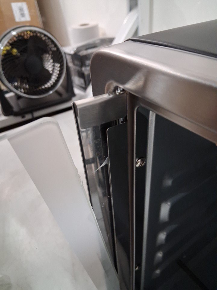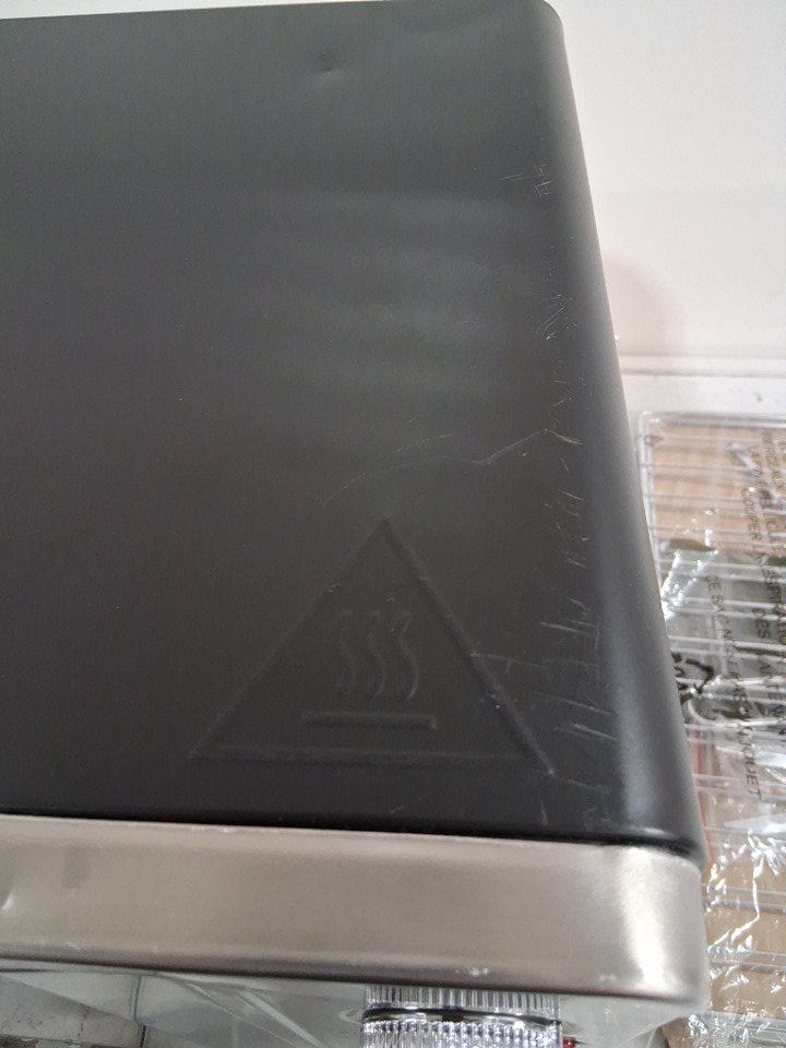 Left hand side door is loose and missing one of the handle stoppers and there are some small scratches (See photos) Tested for power and heat