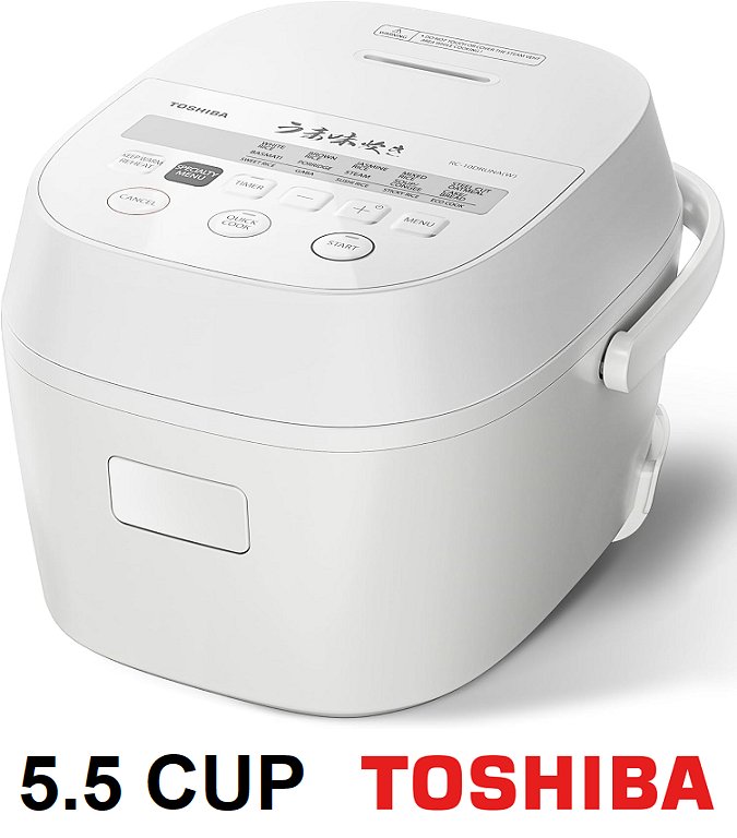 TOSHIBA Rice Cooker 5.5 Cup Uncooked - LED Display, 15 Cooking Functions, 3D Heating Technology, 24-Hr Delay Timer, Auto Keep Warm, Nonstick Inner Pot - White (model: rc-10druna)
