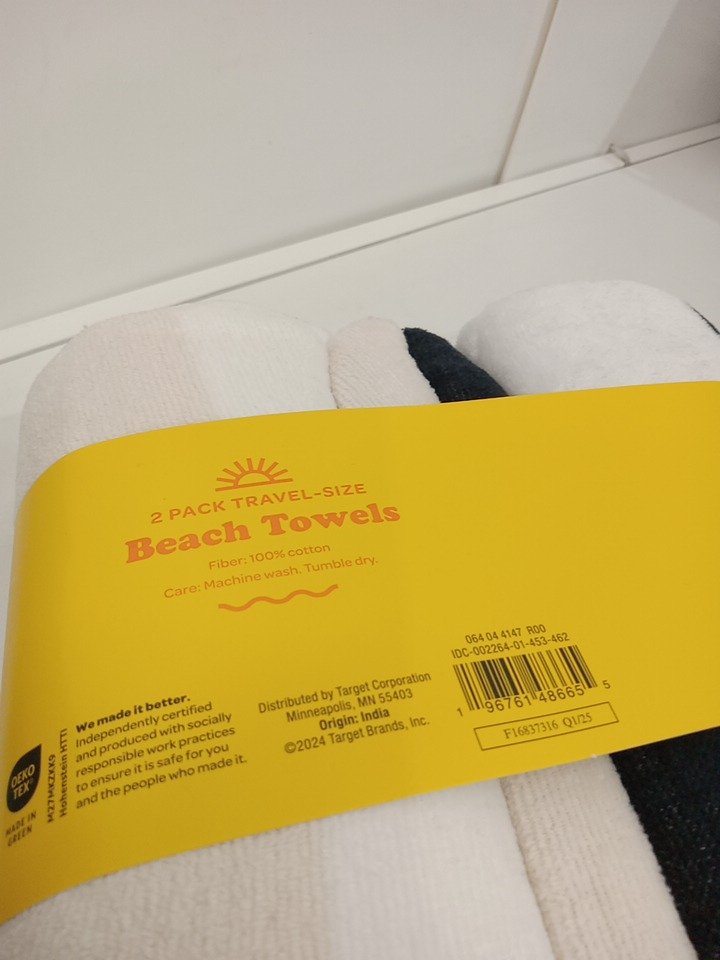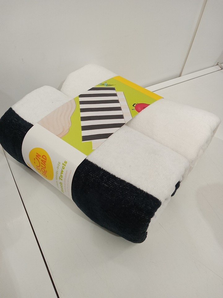 2pk sun squad travel size 100% cotton quick drying beach towels - 28" x 58" - black / cream / white striped