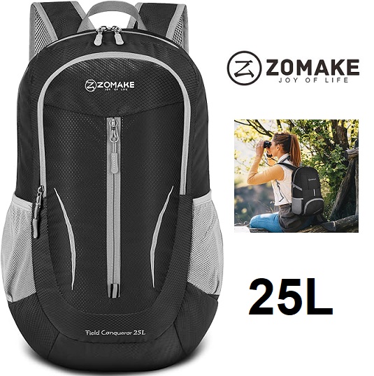 ZOMAKE FIELD CONQUERER ULTRA LIGHTWEIGHT PACKABLE TRAVEL BACKPACK, 25L - BLACK/GREY
