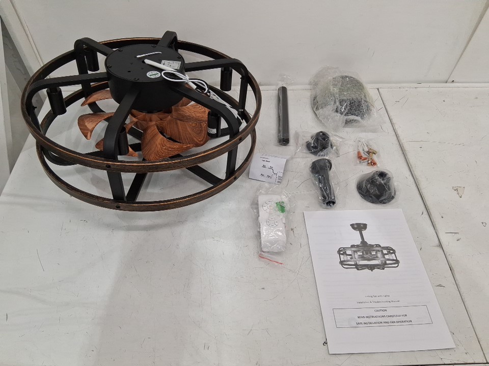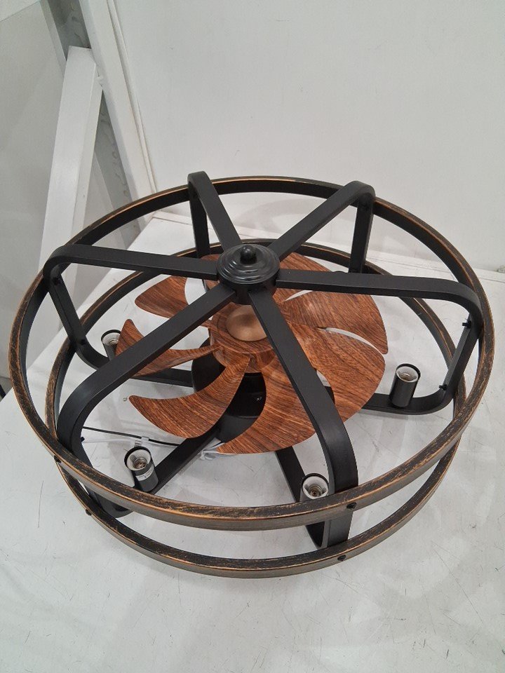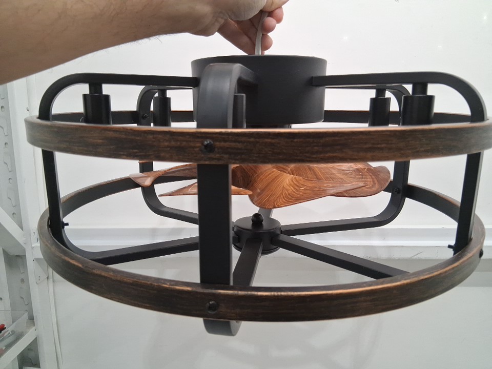 IZOWE Farmhouse caged Flush Mount Ceiling Fan with Lights and remote - 18" - E12 - black/brown (model: FGZ01)