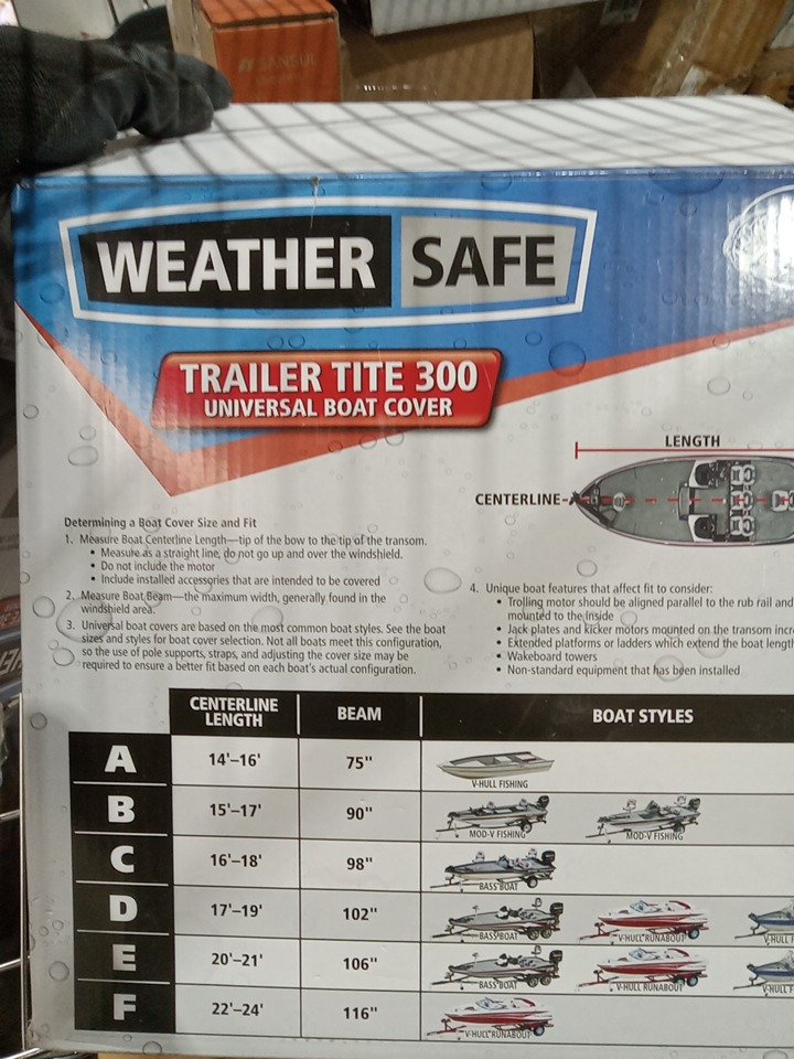 WeatherSafe Trailer Tite Standard-Duty Trailerable Boat Cover - 15ft - 17Ft, BEAM 90" - GREY (MODEL: TRL-A)