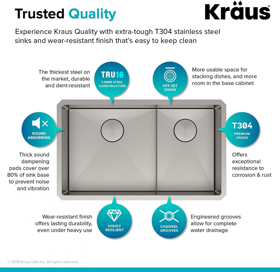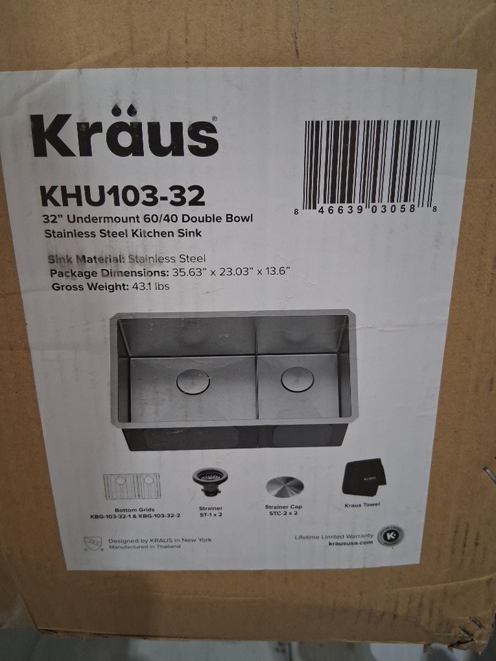 KRAUS STANDART PRO 16 GAUGE 60/40 UNDERMOUND SINK SET WITH BOTTOM GRID, DRAINCAPS AND KITCHEN TOWEL - 32'' - STAINLESS STEEL (MODEL: KHU103-32)