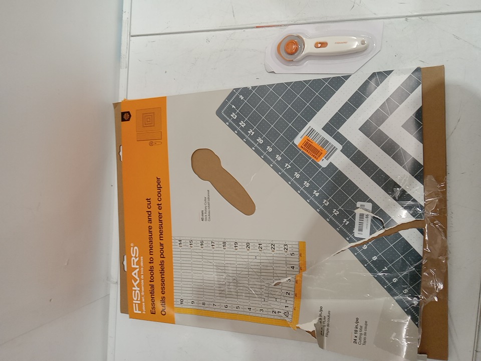3PC Fiskars Cutting Set With Cutting Mat Rotary Cutter And Acrylic Ruler - 18" x 24" Mat - Grey (Model: 183900)