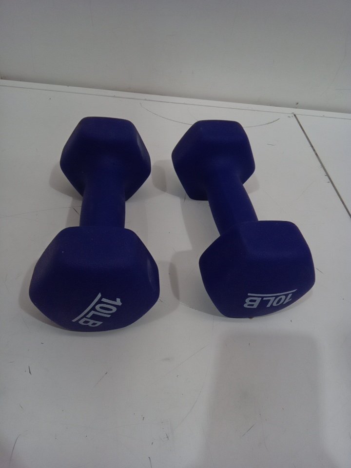2PK AMAZON BASICS neoprene hexagon free-weight workout dumbbells - 10lbs each/20lbs total - navy blue