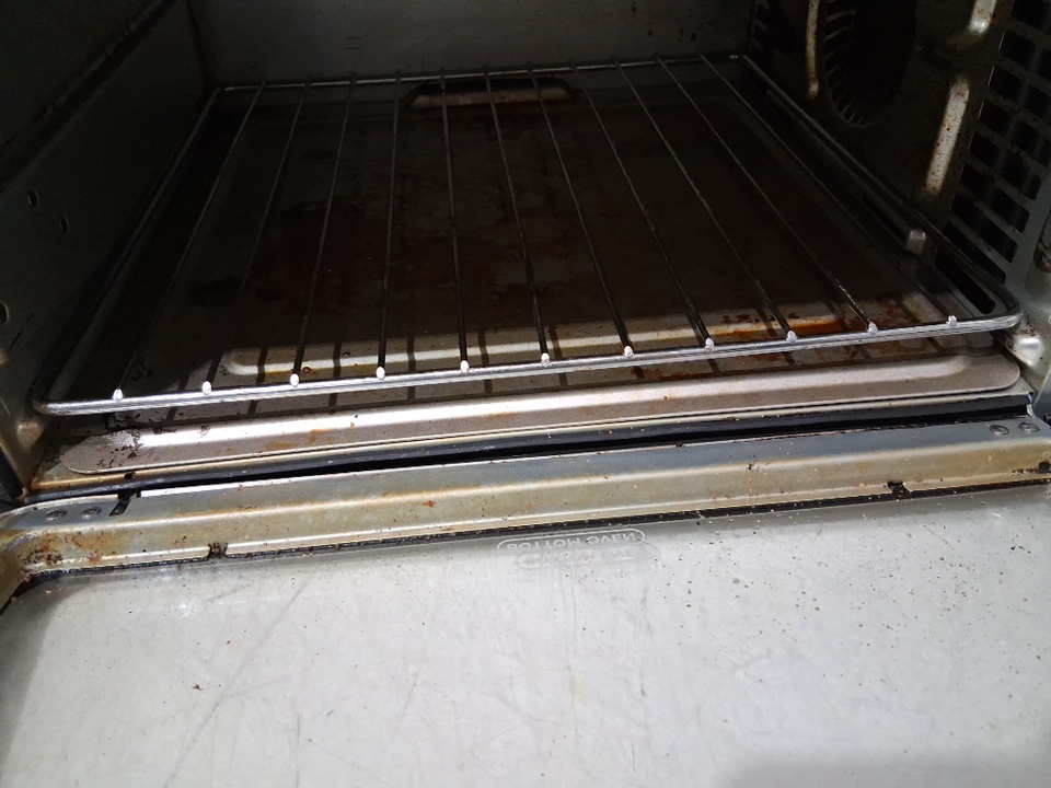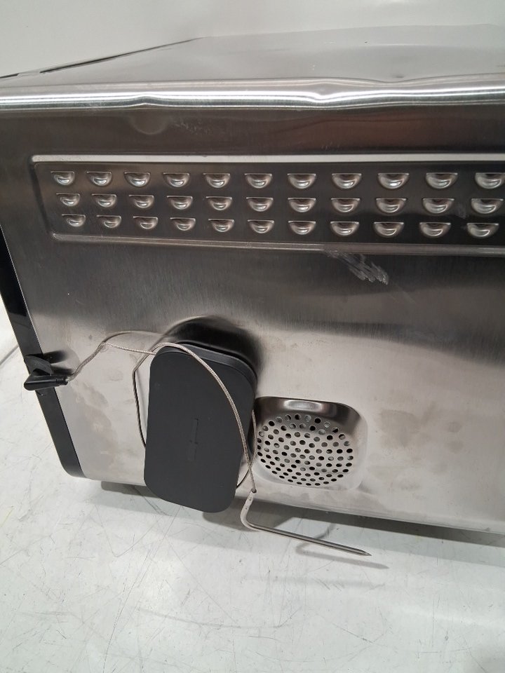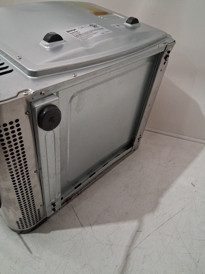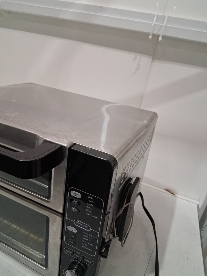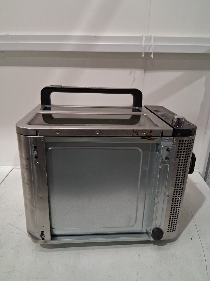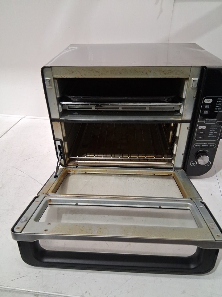 it has large dents, grease and food residue stuck in it from previous use. missing some of the attachments (insert plates) and foot piece for bottom tested for power only