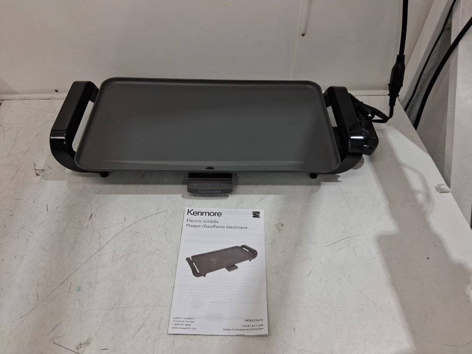 kenmore electric non-stick griddle - 1500w adjustable temperature griddle for pancakes, breakfast, grilled cheese - 10" x 18" cooking surface (model: kknseggrey)