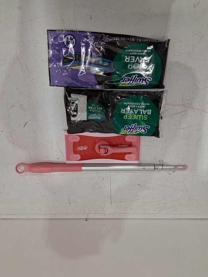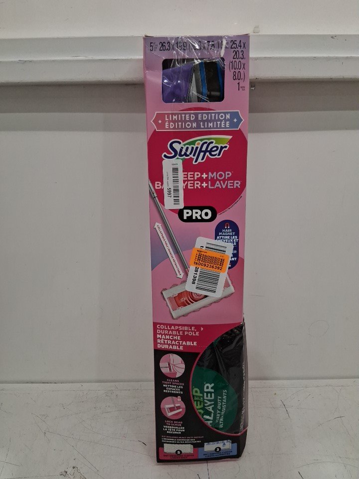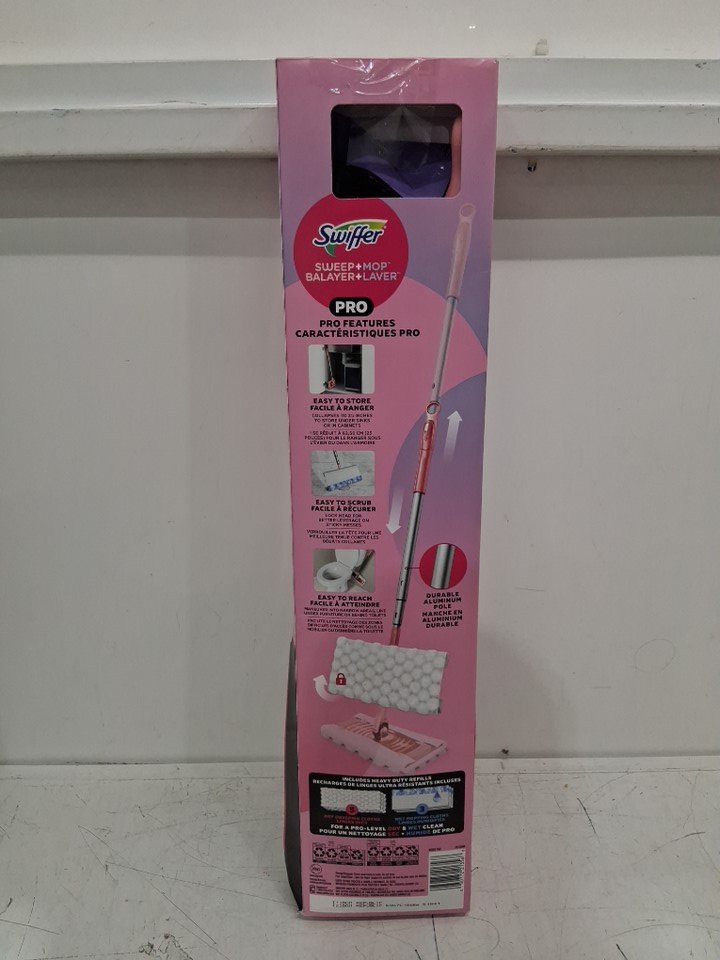 swiffer 2-in-1 floor sweep & mop pro with 5 heavy duty dry sweep clothes & 3 wet mopping cloths - pink