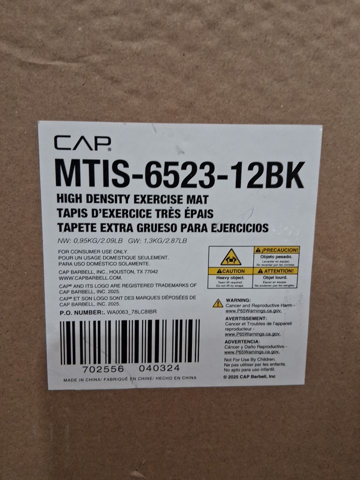 CAP Barbell High Density Exercise Yoga Mat with Strap - 1/2" x 24"x 68" - black (model: mtis-6523-12bk)