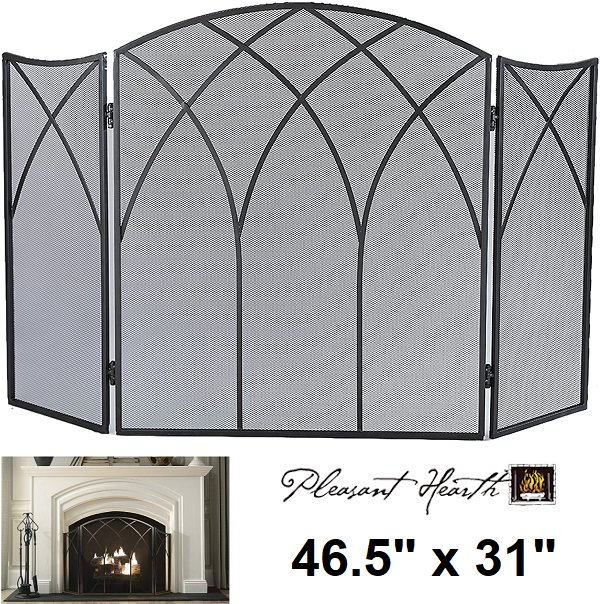 Pleasant Hearth 3-Panel Gothic Fireplace Screen - 46.5"L x 31"H - Black
