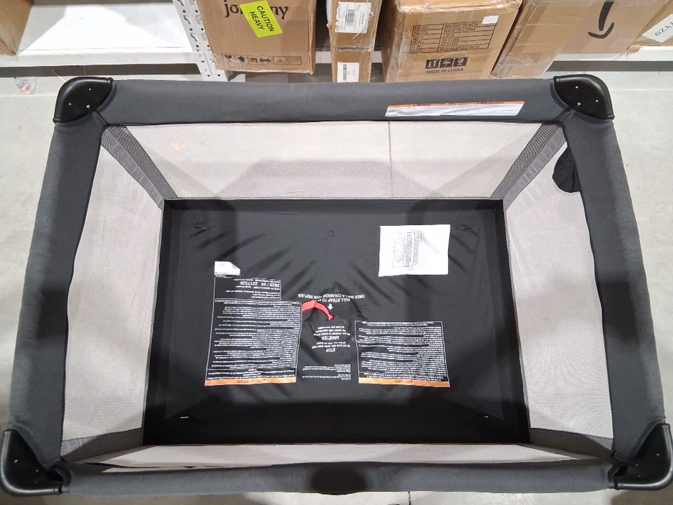 There is minor stain on the play yard mat and there is hair residue due to previous use.