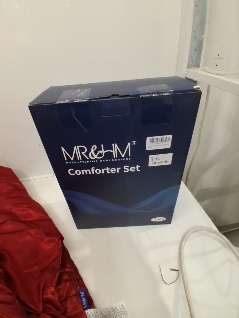 7PC MR&HM Luxurious Pinch Pleat Satin Comforter BEDDING SET - QUEEN - BURGUNDY