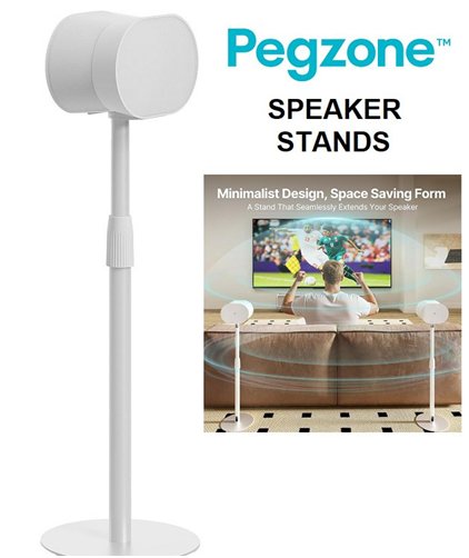 pegzone height adjustable speaker stands for sonos era 100/300 - 26.9" to 42" - White (Model: HW1156WH-2)