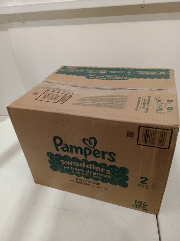 186PK PAMPERS SWADDLERS DISPOSABLE DIAPERS - SIZE 2 (12-18lbs)