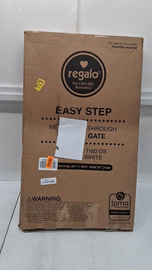 REGALO EASY-STEP METAL WALK-THROUGH SAFETY GATE - 29'' x 38.5" to 30" - WHITE (MODEL: 1160DS)