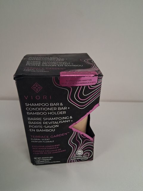3PC VIORI shampoo & conditioner bars AND BAMBOO HOLDER - TERRACE GARDEN