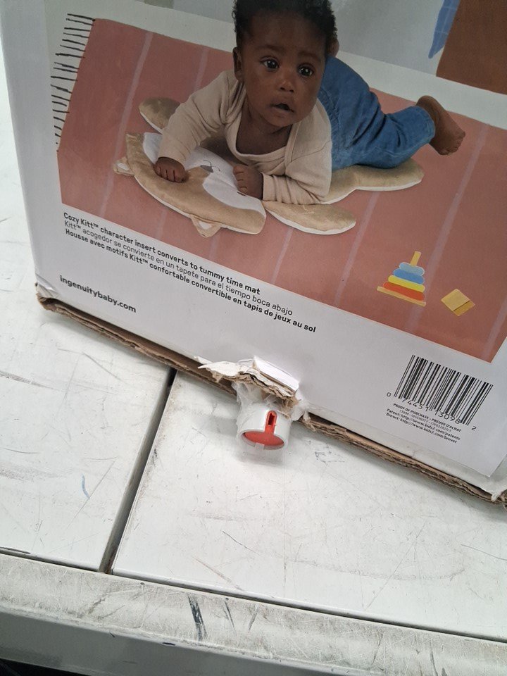 Box is still factory glue sealed. Part of pole is coming out of packaging
